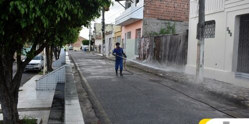 manhã desta quinta-feira, 28 de maio, a desinfecção das principais ruas da