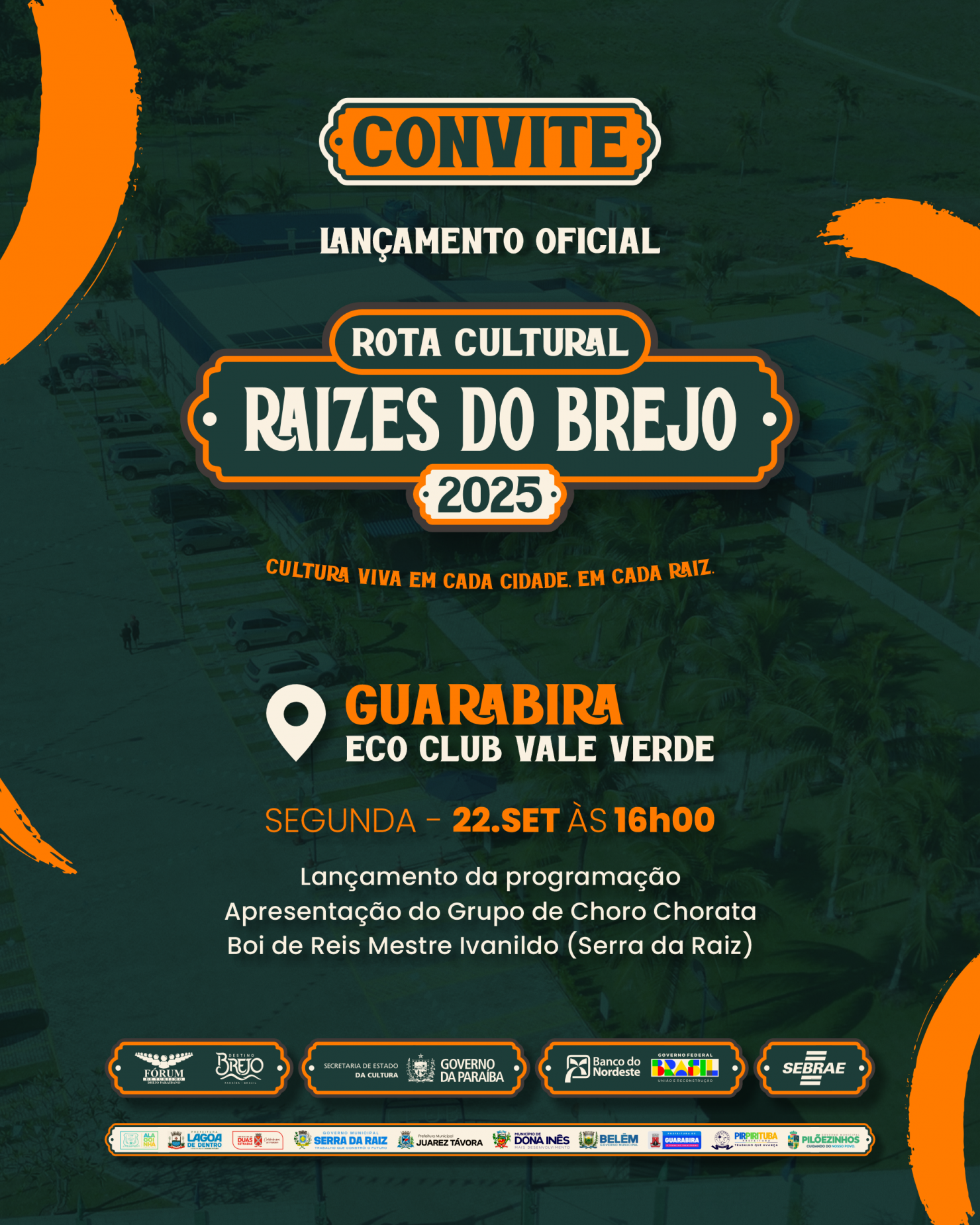 Guarabira será o ponto de partida para mais uma grande celebração da cultura e do turismo da região do Brejo paraibano. Na próxima segunda-feira, 22 de setembro, às 16h, no Eco Club Vale Verde, acontece o lançamento oficial da Rota Cultural Raízes do Brejo 2025, evento que anuncia a programação de uma das iniciativas mais marcantes do calendário cultural da Paraíba.