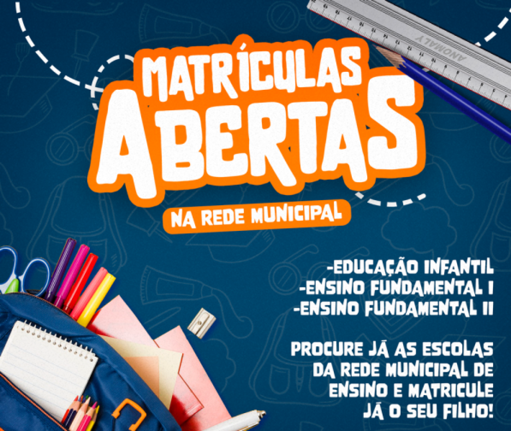 Faça já a matrícula do seu filho(a) nas escolas da rede municipal de ensino para as modalidades de Educação Infantil, Ensino Fundamental I e II.