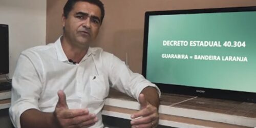 Em Guarabira passa a vigorar a bandeira laranja conforme Decreto Estadual. O prefeito Marcus Diogo explica pontos do decreto tirando as dúvidas quanto sua aplicação no âmbito do Município de Guarabira. Acompanhe no vídeo a seguir.