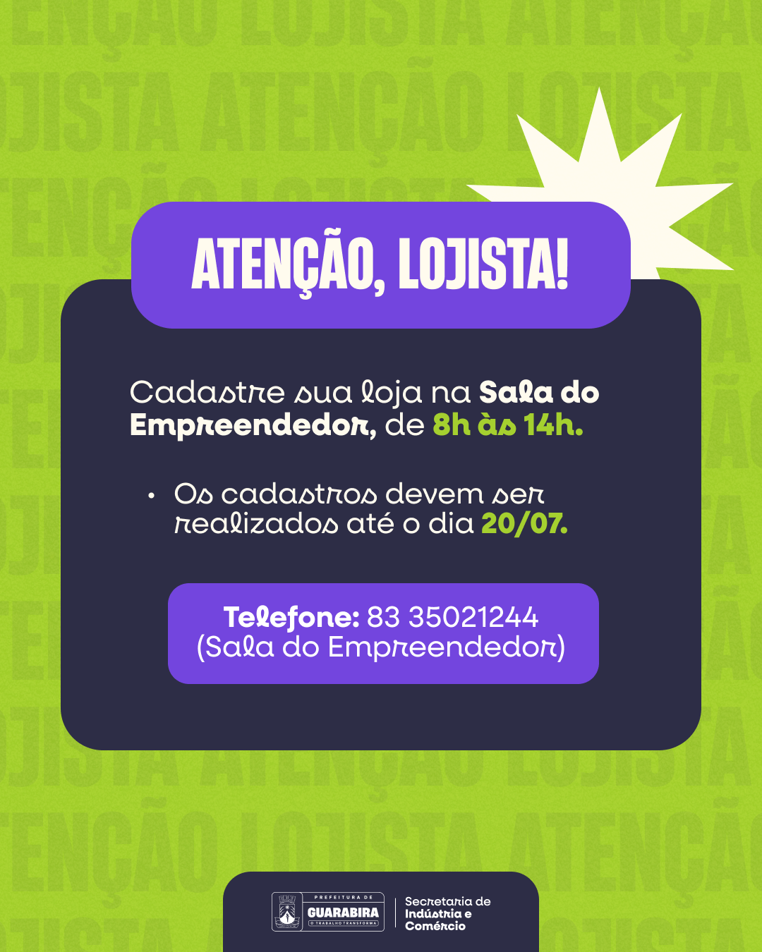 Os comerciantes interessados em participar do Liquida Guarabira devem realizar seu cadastro na Sala do Empreendedor, localizada ao lado da sede da Prefeitura. O atendimento acontece de segunda a sexta-feira, das 8h às 14h, número para contato (83) 3502-1244, com prazo final para inscrição até o dia 20 de julho.