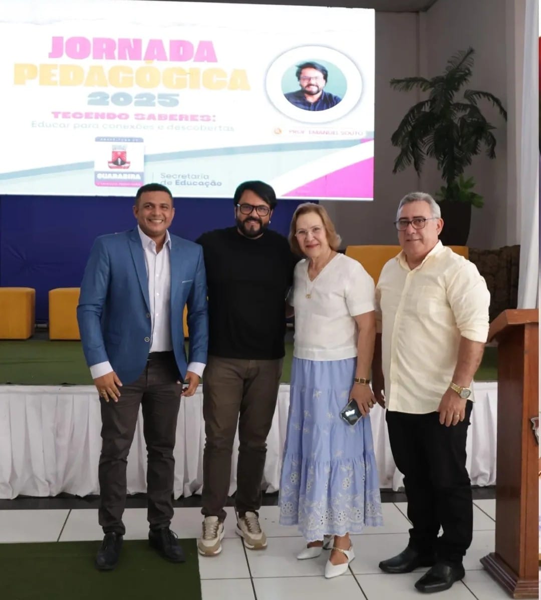 Com o tema “Tecendo Saberes: educar para conexões e descobertas”, a abertura da Jornada contou com a presença da prefeita Léa Toscano, que participou do evento ao lado do vice-prefeito Raimundo Macedo, do secretário de Educação, Tiago Justino e do coordenador Geral de Educação, Dr. Genes Duarte.