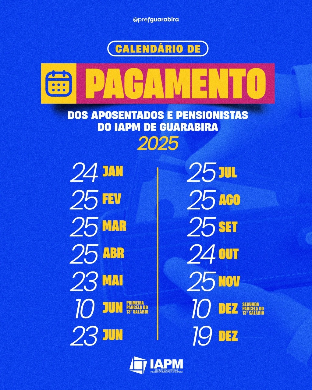 O Instituto de Assistência e Previdência Municipal (IAMP) de Guarabira anunciou o calendário oficial de pagamentos para os aposentados e pensionistas referente ao ano de 2025. A iniciativa reforça o compromisso com a transparência e a previsibilidade, permitindo que os beneficiários organizem suas finanças.