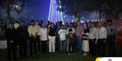 com a esposa Verônica Lima, deu por iniciado a iluminação da árvore, tal como