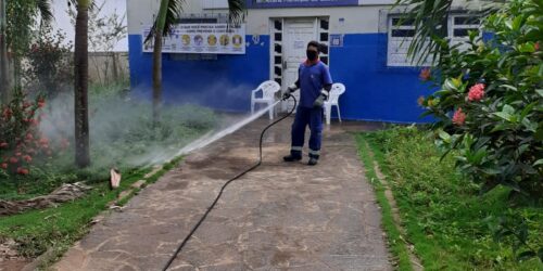 desinfecção sanitária nos principais pontos da zona urbana, neste sábado, 6 de