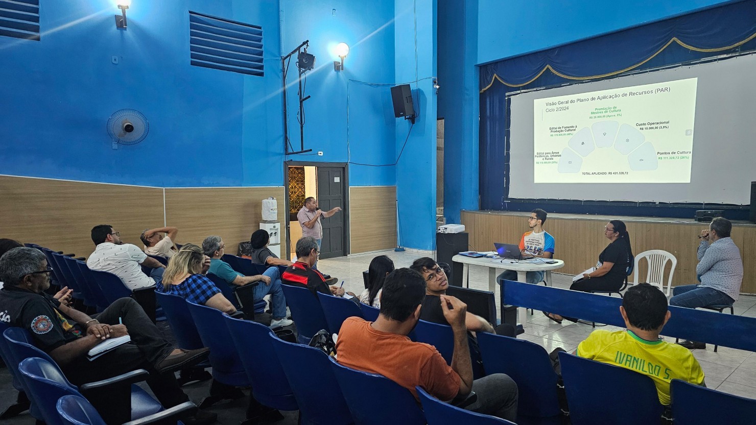 A reunião foi realizada no Teatro Municipal Geraldo Alverga e contou com a participação ativa de conselheiros e convidados, que se reuniram com o objetivo de discutir e definir as estratégias de destinação dos recursos que serão investidos no fortalecimento do setor cultural local. A construção coletiva do plano visa garantir maior transparência, diálogo e efetividade nas ações culturais que serão executadas com os recursos da PNAB.