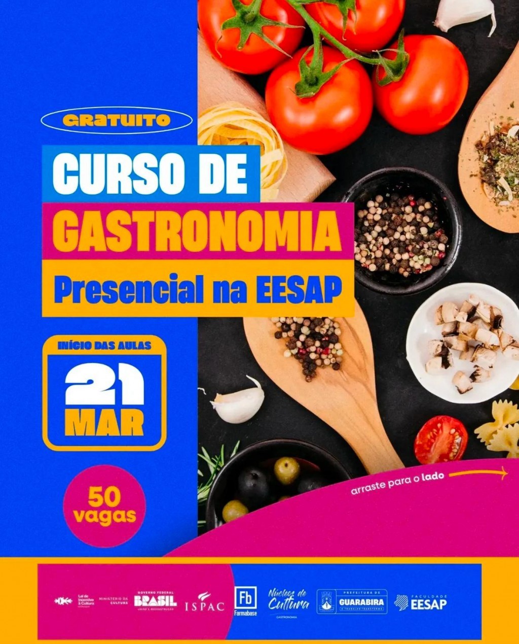 Estão abertas as inscrições para o curso gratuito de Gastronomia, oferecido pela Farmabase com apoio da Prefeitura de Guarabira. As aulas serão presenciais na Escola de Ensino Superior do Agreste Paraibano (EESAP) e começam no dia 21 de março.