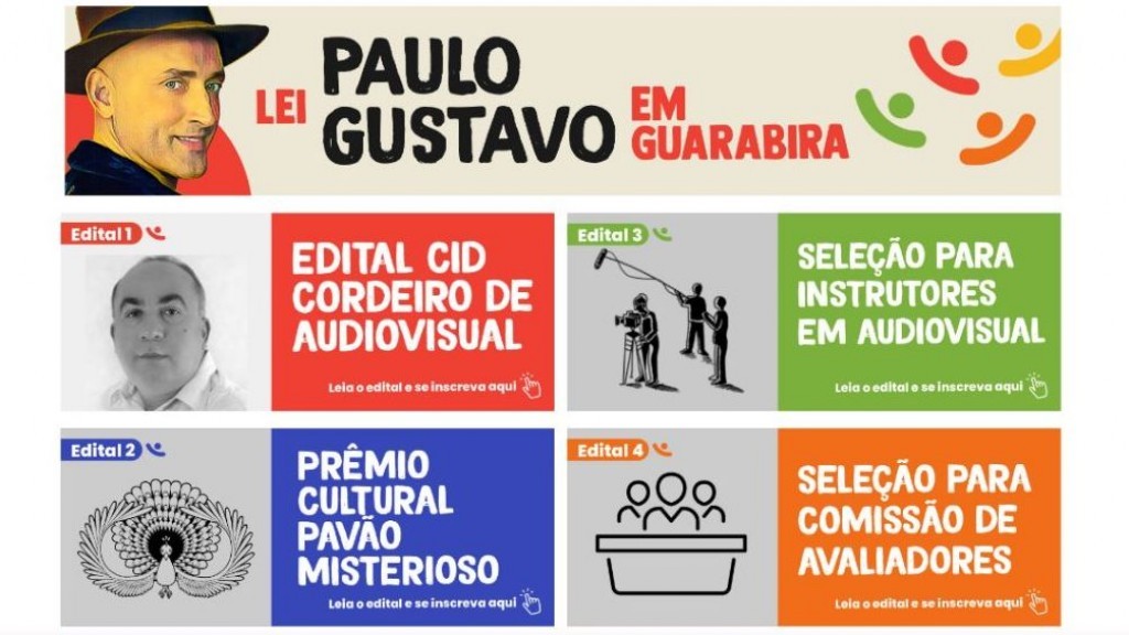 Já estão abertas, no município de Guarabira, as inscrições de artistas e agentes culturais na Lei Paulo Gustavo. A Prefeitura Municipal, por intermédio da sua Secretaria de Cultura e Turismo, divulgou nesta sexta-feira (14), os primeiros editais com previsão de fomento cultural para produções no Audiovisual, para formação e capacitação nesse setor artístico e para prêmios nas demais áreas da cultura.