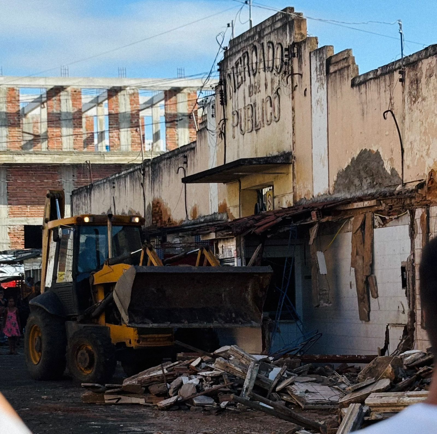Na manhã desta terça-feira, 13, teve início a demolição do Mercado Público, localizado no centro da cidade. A previsão é que os trabalhos de demolição sejam concluídos em até 60 dias, com o serviço sendo executado por uma empresa especializada, que utiliza máquinas e profissionais capacitados para garantir a segurança e agilidade do processo.