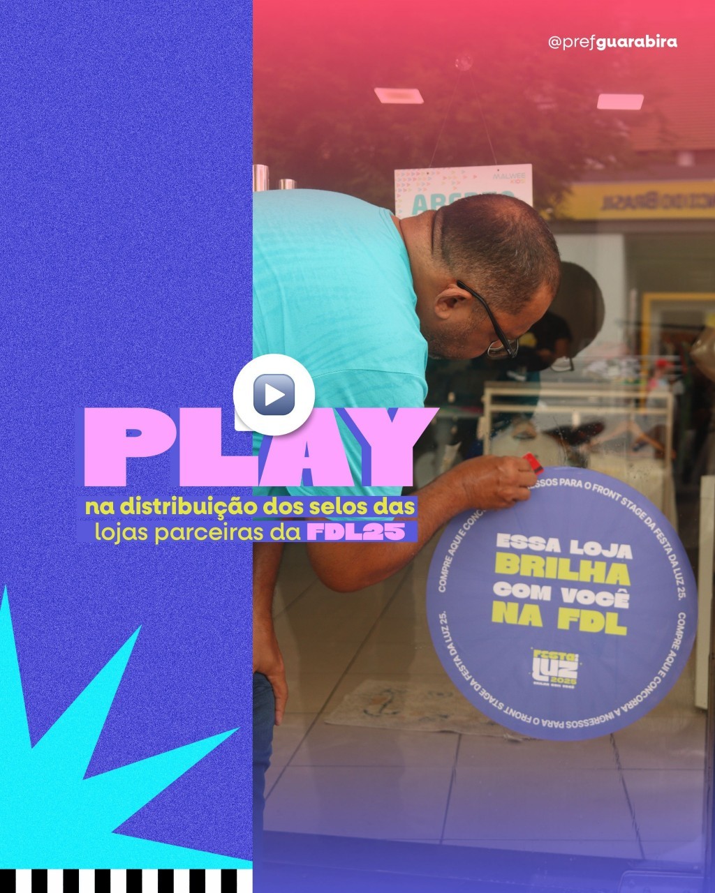 Na tarde desta segunda-feira, 13, a Prefeitura de Guarabira realizou um adesivaço especial para promover os selos de participação da Festa da Luz 2025. A atividade aconteceu no centro da cidade e contou com a presença do secretário de Indústria, Comércio e Desenvolvimento, João Rafael, do coordenador de formação profissional, Gilson Cândido, e do membro da comissão organizadora da Festa da Luz, Wanndson Moura.
