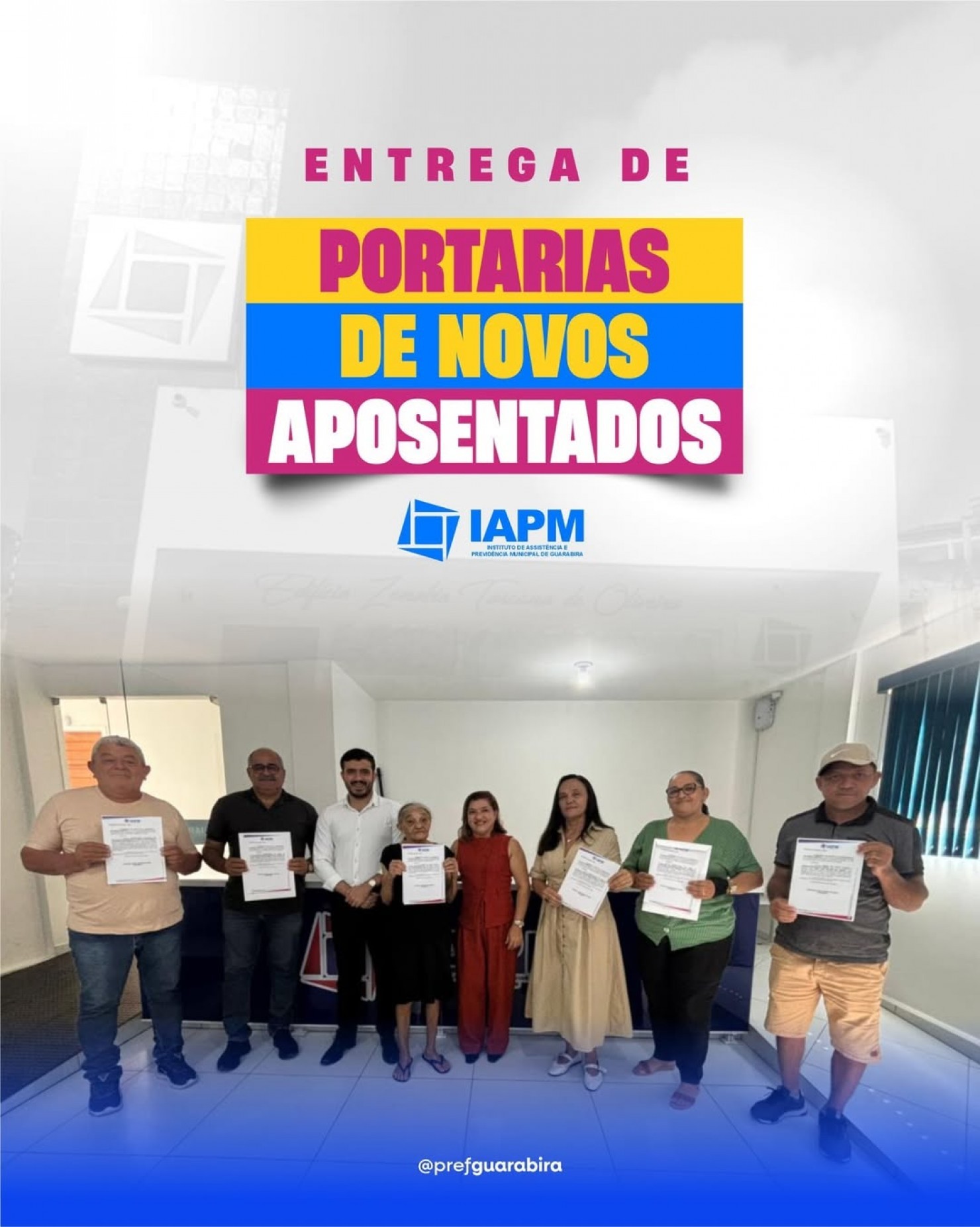 Na manhã desta quinta-feira (08), o Instituto de Assistência e Previdência Municipal (IAPM) de Guarabira realizou a entrega oficial das portarias de aposentadoria e pensão a novos beneficiários do sistema previdenciário municipal. Ao todo, foram concedidos sete benefícios, entre aposentadorias e pensões.