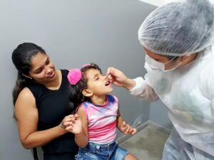 Toda a população com menos de cinco anos precisa ser vacinada para evitar a reintrodução do vírus que causa a paralisia infantil. As crianças menores de 1 ano deverão ser imunizadas conforme a situação vacinal para o esquema primário. As crianças de 1 a 4 anos deverão tomar uma dose da Vacina Oral Poliomielite (VOP), desde que já tenham recebido as três doses de Vacina Inativada Poliomielite (VIP) do esquema básico.