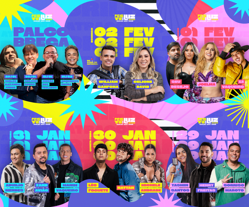 Pelo palco principal passarão nomes de destaque da música regional. No primeiro dia da festa, na quarta-feira (29), se apresentarão Sorriso Maroto, Henry Freitas e Yasmin Santos. Na quinta-feira (30), a programação contará com Nattan, Léo Foguete e Michelle Andrade. Na sexta-feira (31), quem sobe ao palco é Xand Avião, Manin Vaqueiro e Aduílio Mendes. Já no sábado (1º), a festa será comandada por Joelma, Seu Desejo e Zé Vaqueiro. A grande novidade é que os intervalos dos shows serão preenchidos por artistas locais. Estarão no palco giratório as bandas Kipagode, PracaTchan, Renato Garotão e Bem Mais.