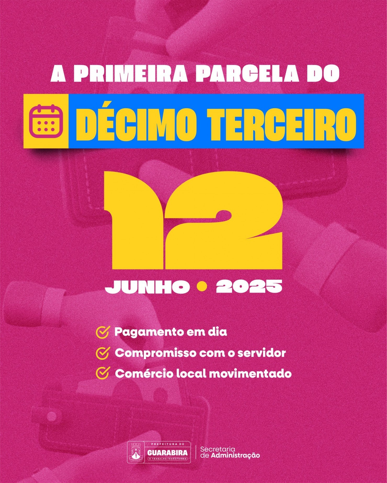 A Prefeitura de Guarabira anunciou que a primeira parcela do décimo terceiro salário dos servidores municipais será paga no próximo dia 12 de junho, quinta-feira, data que inicia as comemorações juninas da cidade.