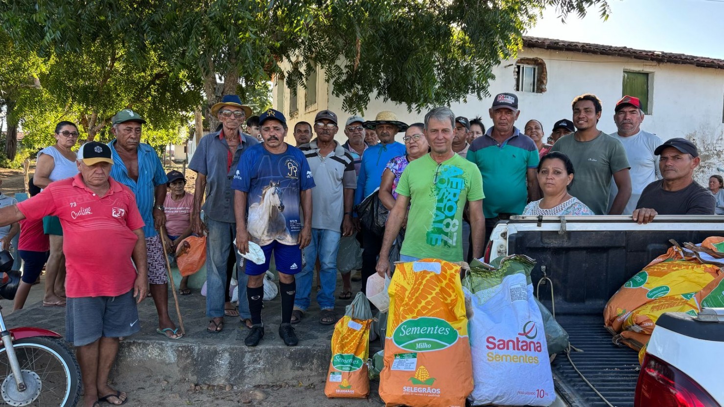 Secretário da Agropecuária e Pesca, Marcelo Bandeira disse que os trabalhadores já tiveram o benefício do corte de terra e agora a gestão entrega as sementes para o plantio, ressaltando a importância dos parceiros para viabilizar a ação.