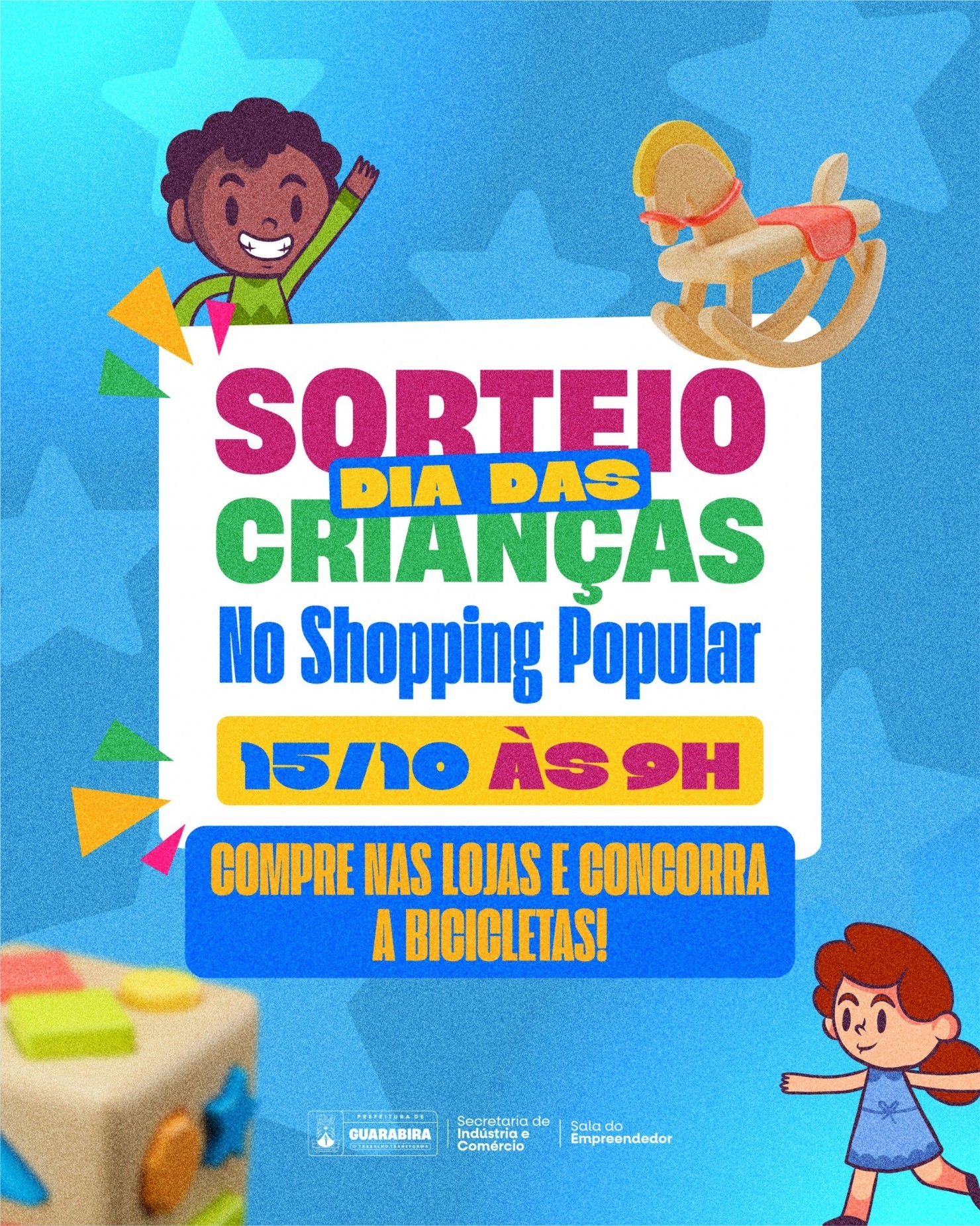 A Prefeitura de Guarabira, por meio da Secretaria de Indústria, Comércio e Desenvolvimento Econômico, deu início nesta quarta-feira (24) à promoção especial de Dia das Crianças no Shopping Popular. A iniciativa tem como objetivo movimentar o comércio e incentivar os consumidores a garantirem os presentes da data comemorativa com preços acessíveis e variedade de opções.
