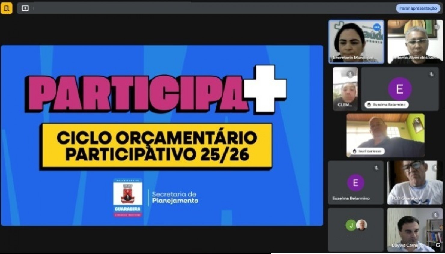 O secretário de planejamento Dayvid Carneiro conduziu a reunião virtual destacando as metas e prioridades planejadas para o próximo ano. Os dados fiscais que compõe o projeto de Lei serão levantados pela contabilidade municipal. "As projeções da LDO são encaminhadas pelo setor contábil, com base no desempenho econômico do Município e nas execuções orçamentárias dos últimos três anos”. O Secretário também apresentou a página do "Participa Mais Guarabira" que será uma grande ferramenta na coleta de propostas e sugestões destinadas não apenas à LDO que já será encaminhada este mês, como também ao PPA e a LOA 2026 que serão discutidas em plenárias durante os meses de maio a julho e encaminhadas em setembro.