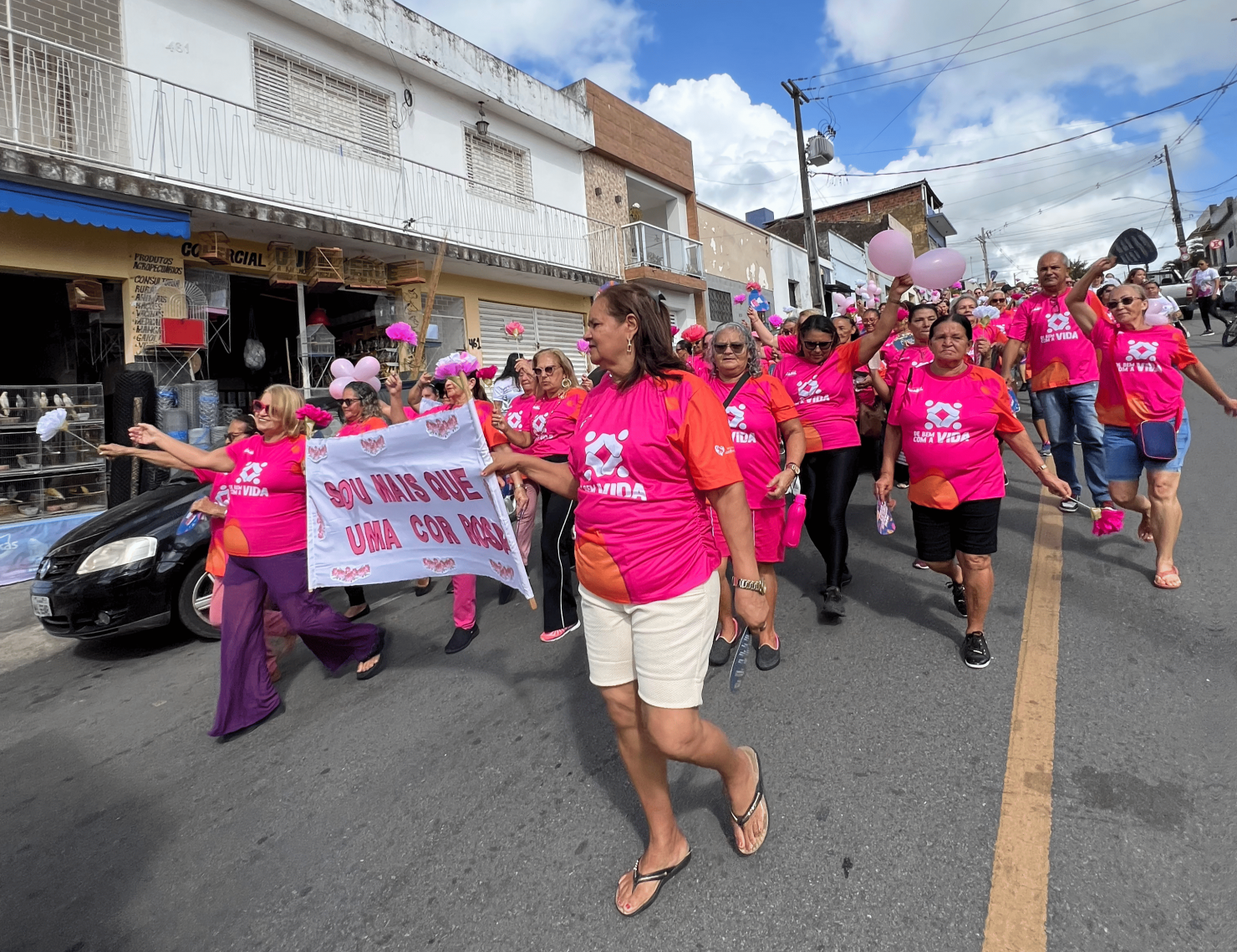 A programação teve início com um café da manhã e a Secretaria de Saúde também esteve presente, oferecendo serviços como aferição de pressão arterial e teste de glicemia, garantindo o cuidado com a saúde das mulheres durante o evento. A caminhada foi conduzida por profissionais da educação física, incentivando a prática de atividades físicas e o bem-estar. Além disso, o grupo "De Bem com a Vida" marcou presença, reforçando o clima de integração e positividade.