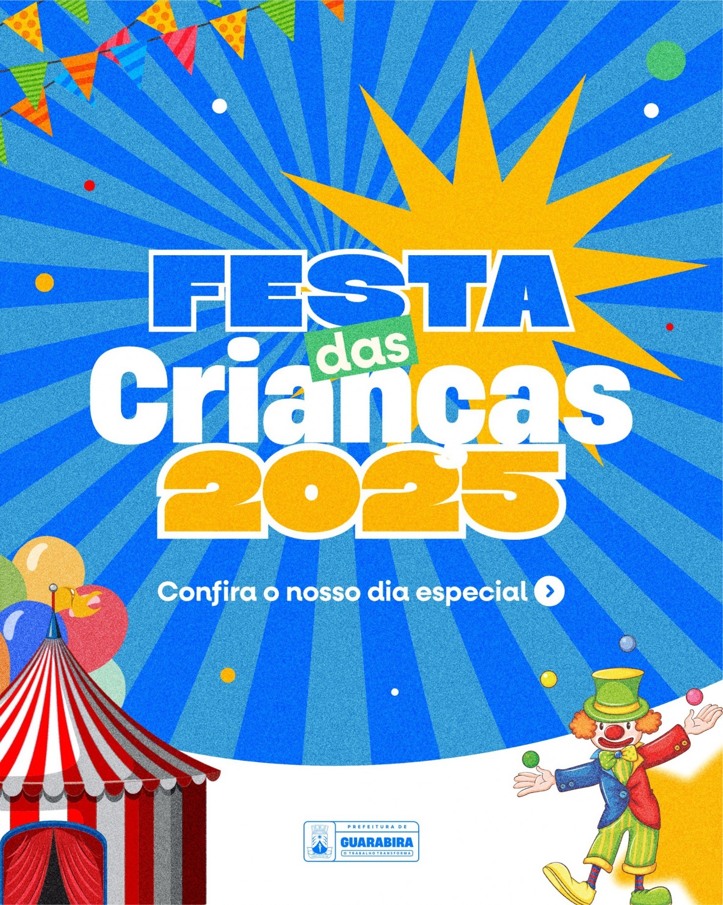 A Prefeitura de Guarabira preparou um domingo mais que especial para celebrar o Dia das Crianças. No próximo dia 19 de outubro, a partir das 15h, a Praça Novo Milênio será palco da Festa das Crianças 2025, um evento cheio de alegria, brincadeiras e momentos inesquecíveis para os pequenos.
