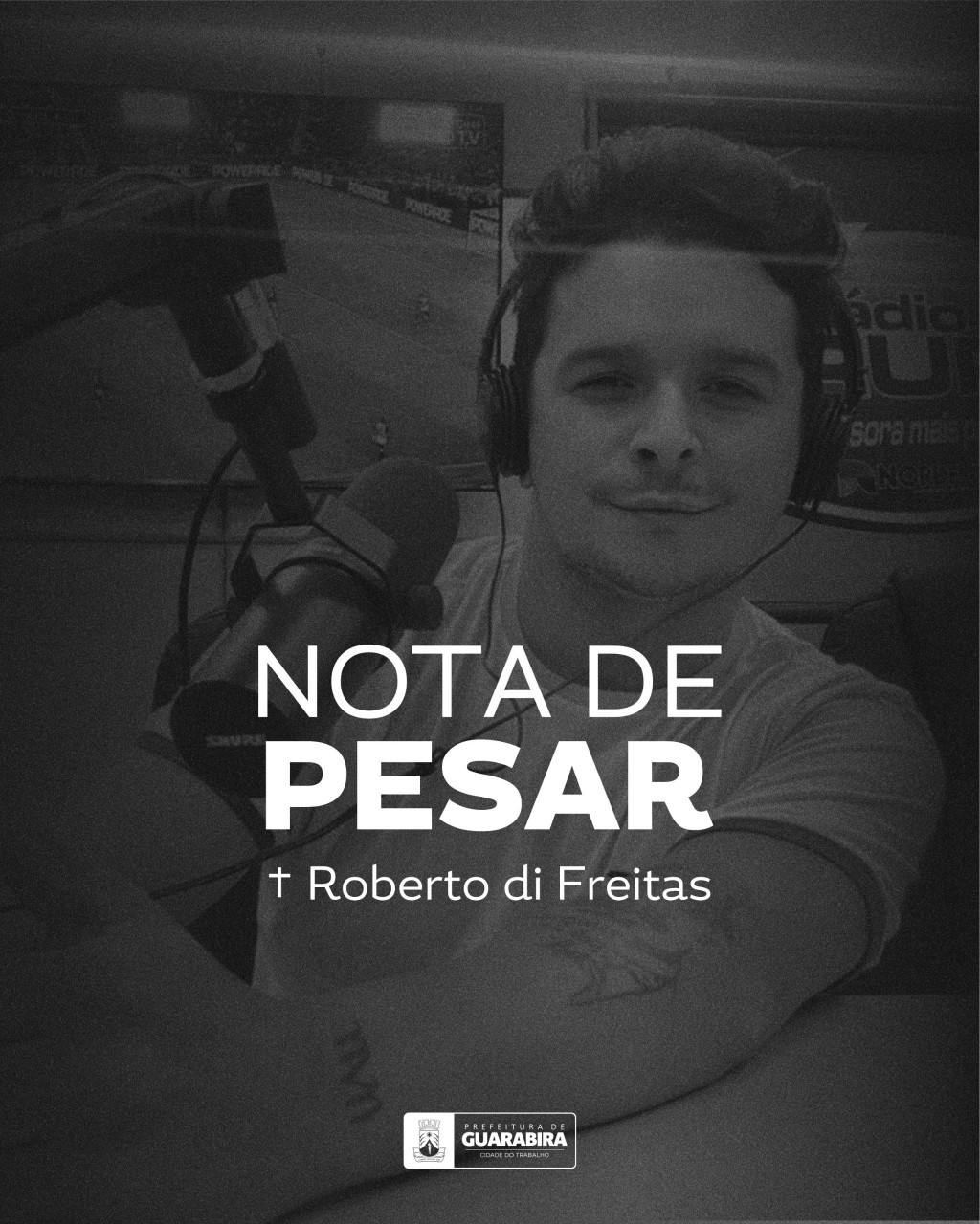 “Em nome da Prefeitura Municipal de Guarabira, do prefeito Marcus Diôgo e com o sentimento de consternação de toda a sociedade guarabirense e do ambiente cultural do município, vem a público lamentar o falecimento do jovem artista, comunicador e profissional bastante dinâmico Roberto di Freitas.